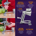 - A WONDROUSLY VERSATILE FOOD PROCESSOR: Utilizing an elegantly simple circular crank gravity-fed design, our robust vegetable chopper so easily eliminates tiresome knife-cutting sessions that you'll never want to pay expensive restaurant prices ever again.